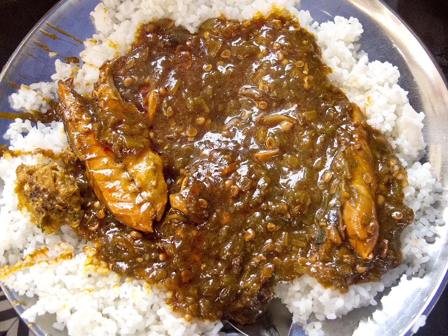 Sauce au gombo, accompagnée de riz blanc.